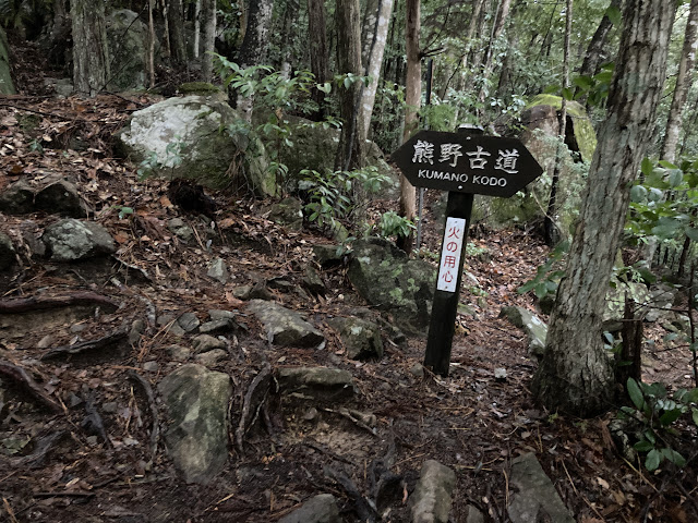 步道沿途有粉紅色的布條當作指引,數量不多,不像台灣樹上綁著各式各樣的登山布條。其實熊野古道上路跡明顯,指標清楚,應該不太容易迷路。但仍然建議手機上要下載航跡圖,萬一真的要是迷失,這可是保命的關鍵。